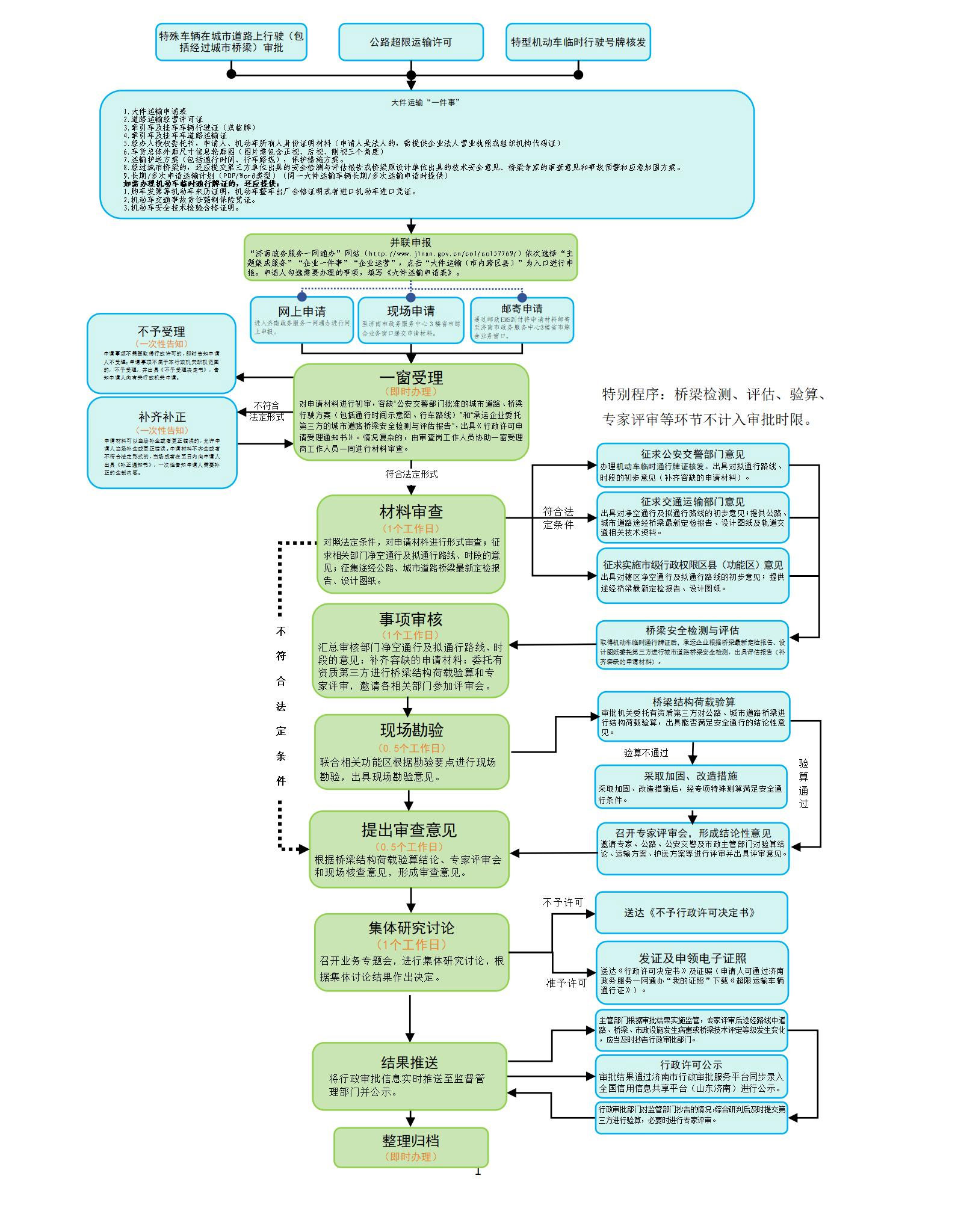 联办部门 | 市发展和改革委员会、市工业和信息化局、市公安局、市住房和城乡建设局、市水务局、市国防动员办、市大数据局、市信息通信发展办(区县相关职能部门)。 注:莱芜区、钢城区启运的市内跨区县“大件运输”由市交通运输局实施审批。 |