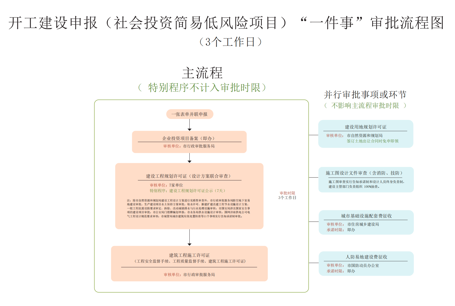 | 服务对象 | 本市行政区域内新建、改建、扩建社会投资简易低风险工程建设项目。 1.社会投资总建筑面积不大于5000平方米、其中地下不超过一层且建筑面积不大于1000平方米,建筑高度不大于24米,年综合能耗1000吨标准煤以下,功能单一,技术要求简单,建筑物性质为办公、商业、公共服务设施、仓库、厂房等项目。 2.涉及易燃易爆、有毒有害等安全保护、生态环境影响大、泉水影响大、污染地块用途变更为公共服务用地、防洪安全、风貌保护、轨道交通保护等特定区域的项目及其他市、区县政府认为不宜纳入的项目除外。 | |||||||||||||||||||||||||||||||||||||||||||||