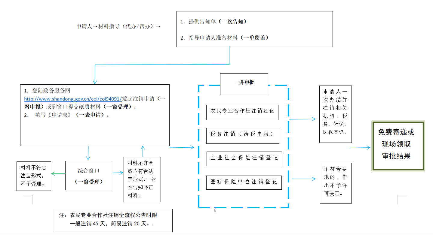 1.农民专业合作社注销登记; 2.税务注销(清税申报); 3.企业社会保险注销登记; 4.医疗保险单位注销登记。 |